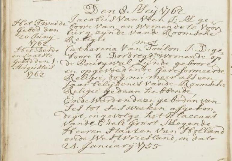 Huwelijk Jacobus van Veen en Catharina van Toulon 1762