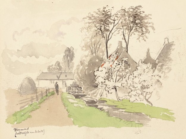 (Bron afbeelding: Erfgoed Leiden en Omstreken, maker is Jan Elias Kikkert, gezicht op Warmond, achterzijde van de Leede, eind 19e eeuw, signatuur PV23015 az.)