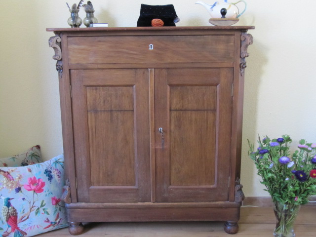 Al veertig jaar bezit ik een zogenoemd dienstbodekastje. Het komt uit de werkplaats van mijn overgrootvader Jacobus van der Steen (1856 – 1942). Deze Leidse meubelmaker produceerde biljarttafels en ameublementen. Als huwelijksgeschenk gaf hij aan elk van zijn vier dochters een complete set kasten, tafels, stoelen en kleine meubeltjes mee. Jacobus en zijn vrouw Petronella ‘Pietje’ Susanna Poptie zijn de ouders van mijn oma aan moederszijde.
